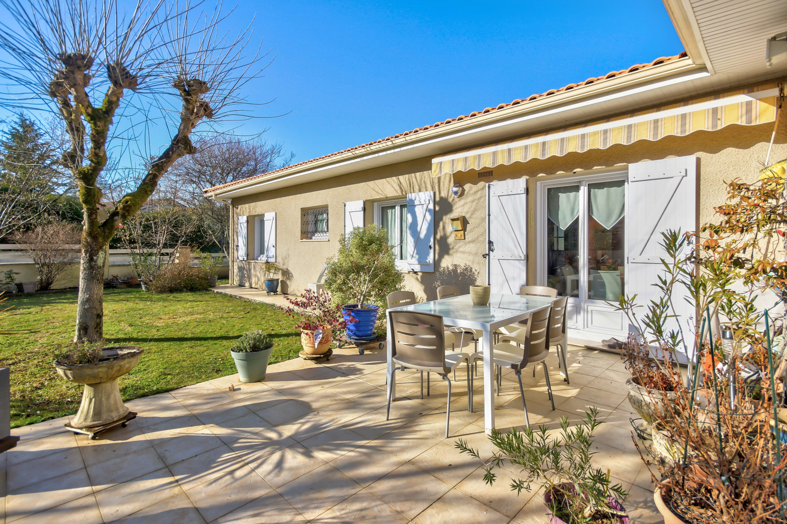 Votre agence immobilière INFIKA, vous propose en exclusivité cette maison de plain-pied de 112 m² construite en 1980, située dans un lotissement calme proche du centre-ville de Sainte-Eulalie. Elle comprend une entrée, un vaste séjour de 38 m², une cuisine équipée séparée de 12 m², trois chambres dont une de 13m², un bureau de 8.80 m² idéal pour le télétravail / ou une chambre d'enfant, une salle d'eau, un WC indépendant. Dehors la maison s'accompagne d'un jardin clos sur une parcelle de 731m², d'un double garage de 27 m² et d'un atelier de 10 m². La maison nécessite des travaux de rafraîchissement, mais offre une belle opportunité pour une famille souhaitant s'installer à proximité des commodités de Sainte-Eulalie. En termes de prestations, le bien est équipé en menuiseries PVC, double vitrage, portail électrique et d'une allée goudronnée. La maison est équipée d'une chaudière gaz, et le plus la toiture est entièrement neuve. N'hésitez plus et contactez Nathan DEGANS, agent commercial, au 06.98.52.77.29 pour avoir plus de renseignements et convenir d'une visite (une visite virtuelle est disponible sur notre site internet).