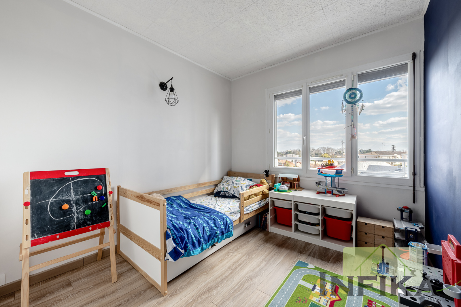 À Mérignac proche du parc de Bourran, je vous invite à découvrir un bel appartement T4 de 83m2. Un appartement propice à la vie familiale. Il se constitue d'un espace cuisine, un coin salon de 28m², une salle de bain et un espace nuit comprenant 3 chambres. Machine à laver et seche linge sont dans le sechoir à coté de la cuisine. La surface plancher habitable fait approximativement 83m². Le bien donne accès à un espace de stockage en sous-sol. Il n'y a aucun travaux à prévoir pour pouvoir y habiter. À l'extérieur, l'appartement vous offre 3 balcons totalisant 6,3m², ce qui porte la superficie utile à 87.9m². Logement au troisième niveau d'un bâtiment de 10 étages mais l'ensemble immobilier dispose d'un ascenseur. Le prix est de 230 000 €. Impôt foncier : 1 307 € par an.Les charges de copropriétés comprennent le chauffage au sol, l'eau froide et chaude, l'entretien de l'ascenseur, des espaces vert et des parties communes. Il ne vous reste qu'à payer l'éléctricité (environ 40euros par mois) Une visite virtuelle matterport est disponible sur notre site INFIKA.
